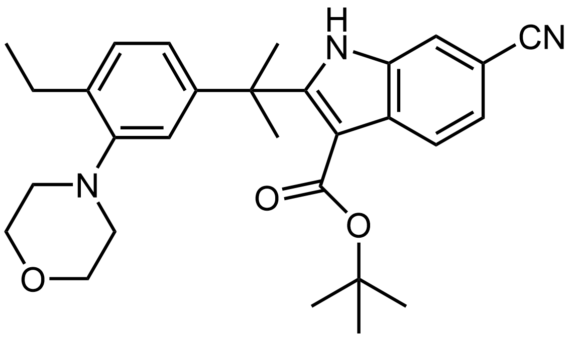 Synonyms: tert-butyl 6-cyano-2-(2-(4-ethyl-3-morpholinophenyl)propan-2-yl)-1H-indole-3-carboxylate