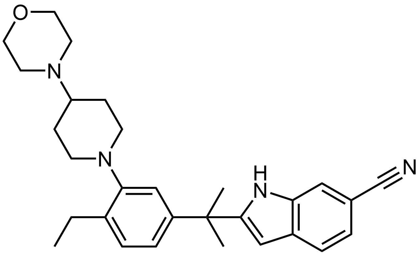 Synonyms: 2-(2-(4-ethyl-3-(4-morpholinopiperidin-1-yl)phenyl)propan-2-yl)-1H-indole-6-carbonitrile