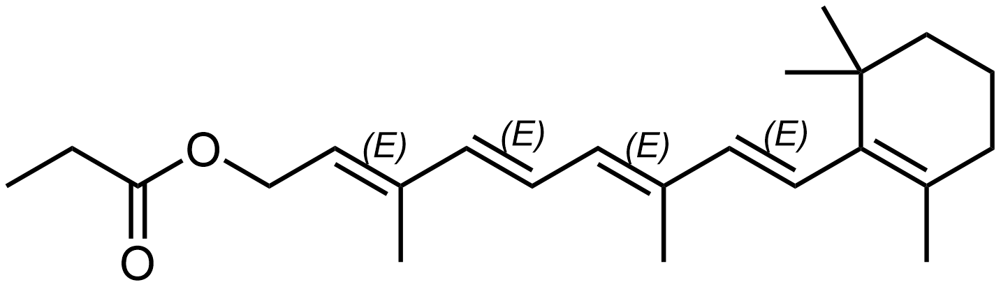 Synonyms: (2E,4E,6E,8E)-3,7-dimethyl-9-(2,6,6-trimethylcyclohex-1-en-1-yl)nona-2,4,6,8-tetraen-1-yl propionate