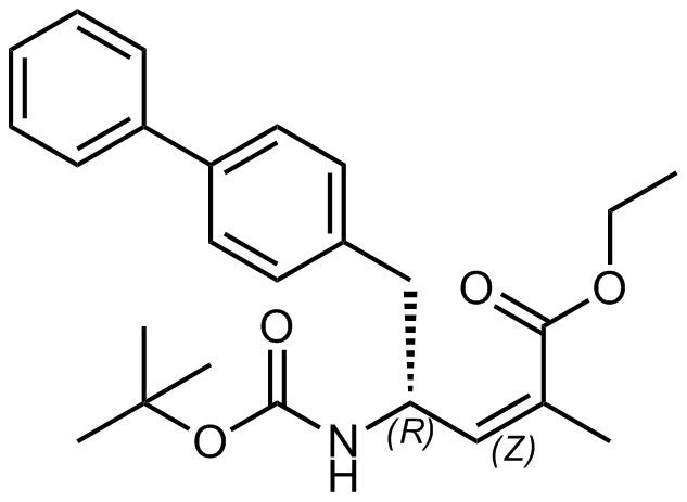 Synonyms: sodium 4-(((2S,4R)-1-([1,1'-biphenyl]-4-yl)-5-ethoxy-4-methyl-5-oxopentan-2-yl)amino)-4-oxobutanoate sodium (S)-5-(4'-((N-(1-carboxylato-2-methylpropyl)pentanamido)methyl)-[1,1'-biphenyl]-2-yl)tetrazol-1-ide hydrate