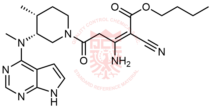 Synonyms: butyl (E)-3-amino-2-cyano-5-((3R,4R)-4-methyl-3-(methyl(7H-pyrrolo[2,3-d]pyrimidin-4-yl)amino)piperidin-1-yl)-5-oxopent-2-enoate