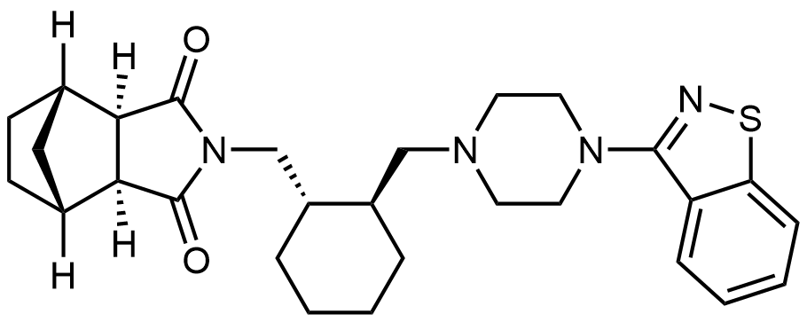Synonyms: 4-(benzo[d]isothiazol-3-yl)-1-(((1R,2R)-2-(((3aR,4S,7R,7aS)-1,3-dioxohexahydro-1H-4,7-methanoisoindol-2(3H)-yl)methyl)cyclohexyl)methyl)piperazine 1-oxide