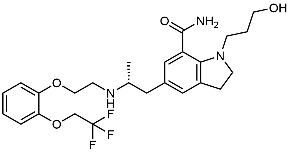 Synonyms: (R)-1-(3-hydroxypropyl)-5-(2-((2-(2-(2,2,2-trifluoroethoxy)phenoxy)ethyl)amino)propyl)indoline-7-carboxamide