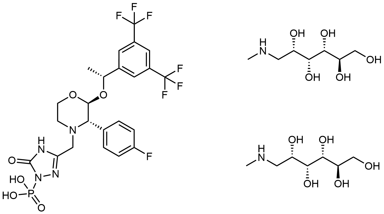 Synonyms: (3-(((2S,3S)-2-((R)-1-(3,5-bis(trifluoromethyl)phenyl)ethoxy)-3-(4-fluorophenyl)morpholino)methyl)-5-oxo-4,5-dihydro-1H-1,2,4-triazol-1-yl)phosphonic acid (2R,3R,4R,5S)-6-(methylamino)hexane-1,2,3,4,5-pentaol
