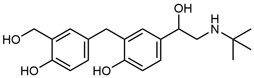 Synonyms: 4-(2-(tert-butylamino)-1-hydroxyethyl)-2-(4-hydroxy-3-(hydroxymethyl)benzyl)phenol