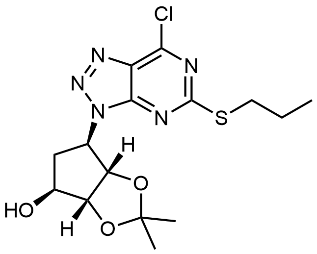 Synonyms: (3aR,4S,6R,6aS)-6-(7-chloro-5-(propylthio)-3H-[1,2,3]triazolo[4,5-d]pyrimidin-3-yl)-2,2-dimethyltetrahydro-3aH-cyclopenta[d][1,3]dioxol-4-ol