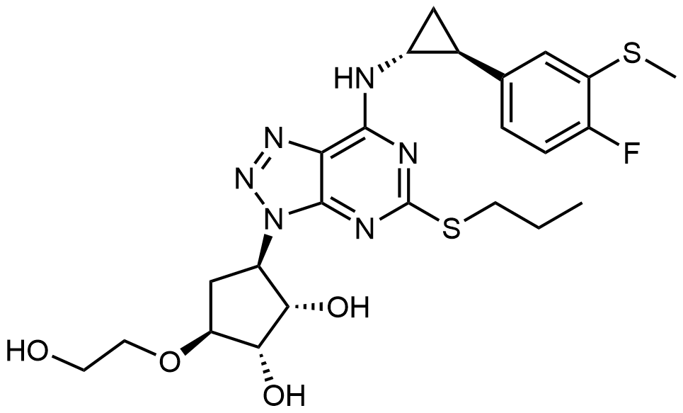 Synonyms: (1S,2S,3R,5S)-3-(7-(((1R,2S)-2-(4-fluoro-3-(methylthio)phenyl)cyclopropyl)amino)-5-(propylthio)-3H-[1,2,3]triazolo[4,5-d]pyrimidin-3-yl)-5-(2-hydroxyethoxy)cyclopentane-1,2-diol