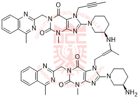 Synonyms: 8-((R)-3-aminopiperidin-1-yl)-7-(3-(((R)-1-(7-(but-2-yn-1-yl)-3-methyl-1-((4-methylquinazolin-2-yl)methyl)-2,6-dioxo-2,3,6,7-tetrahydro-1H-purin-8-yl)piperidin-3-yl)amino)but-2-en-1-yl)-3-methyl-1-((4-methylquinazolin-2-yl)methyl)-1H-purine-2,6(3H,7H)-dione