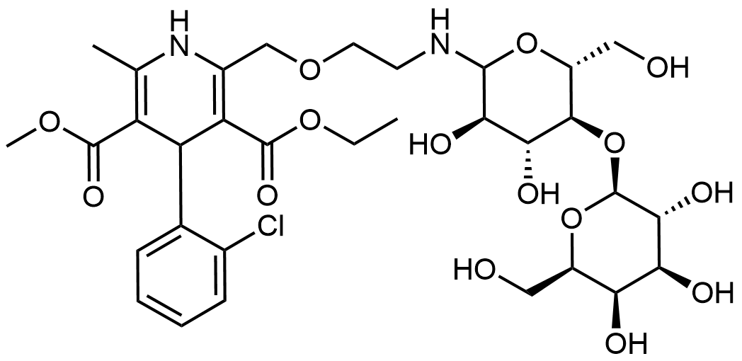 Synonyms: 3-ethyl 5-methyl 4-(2-chlorophenyl)-2-((2-(((3R,4R,5S,6R)-3,4-dihydroxy-6-(hydroxymethyl)-5-(((2S,3R,4S,5R,6R)-3,4,5-trihydroxy-6-(hydroxymethyl)tetrahydro-2H-pyran-2-yl)oxy)tetrahydro-2H-pyran-2-yl)amino)ethoxy)methyl)-6-methyl-1,4-dihydropyridine-3,5-dicarboxylate