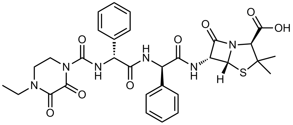 Synonyms: (2S,5R,6R)-6-((R)-2-((R)-2-(4-ethyl-2,3-dioxopiperazine-1-carboxamido)-2-phenylacetamido)-2-phenylacetamido)-3,3-dimethyl-7-oxo-4-thia-1-azabicyclo[3.2.0]heptane-2-carboxylic acid