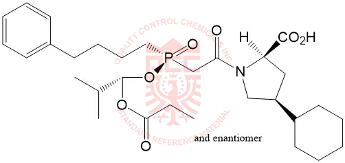 Synonyms: (2RS,4RS)-4-cyclohexyl-1-[[(RS)-[(1SR)-2-methyl-1-(1oxopropoxy)propoxy](4-phenylbutyl)phosphoryl]acetyl]pyrrolidine-2-carboxylicacid