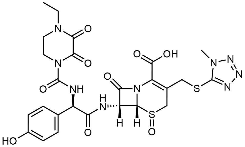 Synonyms: (6R,7R)-7-((R)-2-(4-ethyl-2,3-dioxopiperazine-1-carboxamido)-2-(4-hydroxyphenyl)acetamido)-3-(((1-methyl-1H-tetrazol-5-yl)thio)methyl)-8-oxo-5-thia-1-azabicyclo[4.2.0]oct-2-ene-2-carboxylic acid 5-oxide
