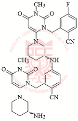 Synonyms: 2-((6-((R)-3-aminopiperidin-1-yl)-3-methyl-2,4-dioxo-3,4-dihydropyrimidin-1(2H)-yl)methyl)-4-(((R)-1-(3-(2-cyano-5-fluorobenzyl)-1-methyl-2,6-dioxo-1,2,3,6-tetrahydropyrimidin-4-yl)piperidin-3-yl)amino)benzonitrile