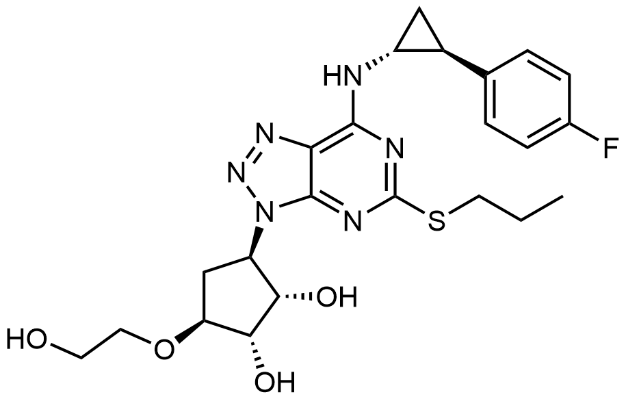 Synonyms: (1S,2S,3R,5S)-3-(7-(((1R,2S)-2-(4-fluorophenyl)cyclopropyl)amino)-5-(propylthio)-3H-[1,2,3]triazolo[4,5-d]pyrimidin-3-yl)-5-(2-hydroxyethoxy)cyclopentane-1,2-diol