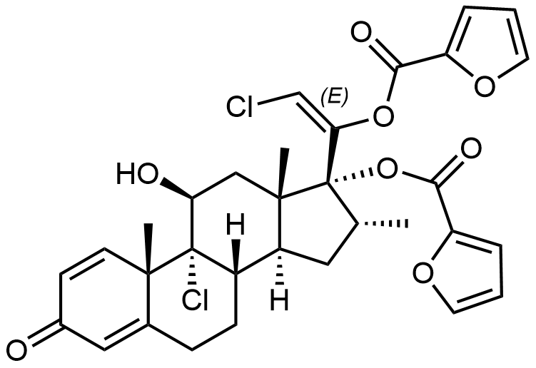 Synonyms: (8S,9R,10S,11S,13S,14S,16R,17R)-9-chloro-17-(2,2-dioxido-5H-1,2-oxathiol-4-yl)-11-hydroxy-10,13,16-trimethyl-3-oxo-6,7,8,9,10,11,12,13,14,15,16,17-dodecahydro-3H-cyclopenta[a]phenanthren-17-yl furan-2-carboxylate