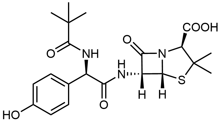 Synonyms: (2S,5R,6R)-6-((R)-2-(4-hydroxyphenyl)-2-pivalamidoacetamido)-3,3-dimethyl-7-oxo-4-thia-1-azabicyclo[3.2.0]heptane-2-carboxylic acid